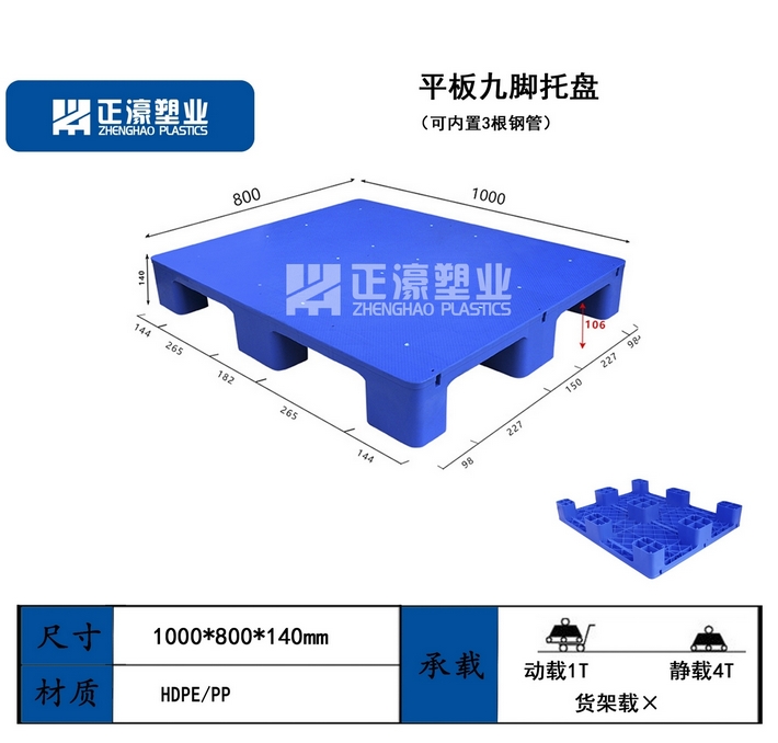 規(guī)格尺寸從1000mm-1600mm,高度由76mm-170mm,能制造多種類型的托盤